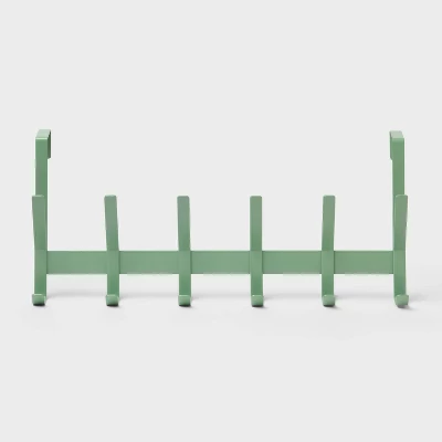 Use the door to organize your essentials with the Over-the-Door 6 Hook from Brightroom™. This sage hook rack has six hooks for ample space for bags, scarves, and more. Made of steel in a powder-coated finish, it helps you save space while maintaining a tidy home.